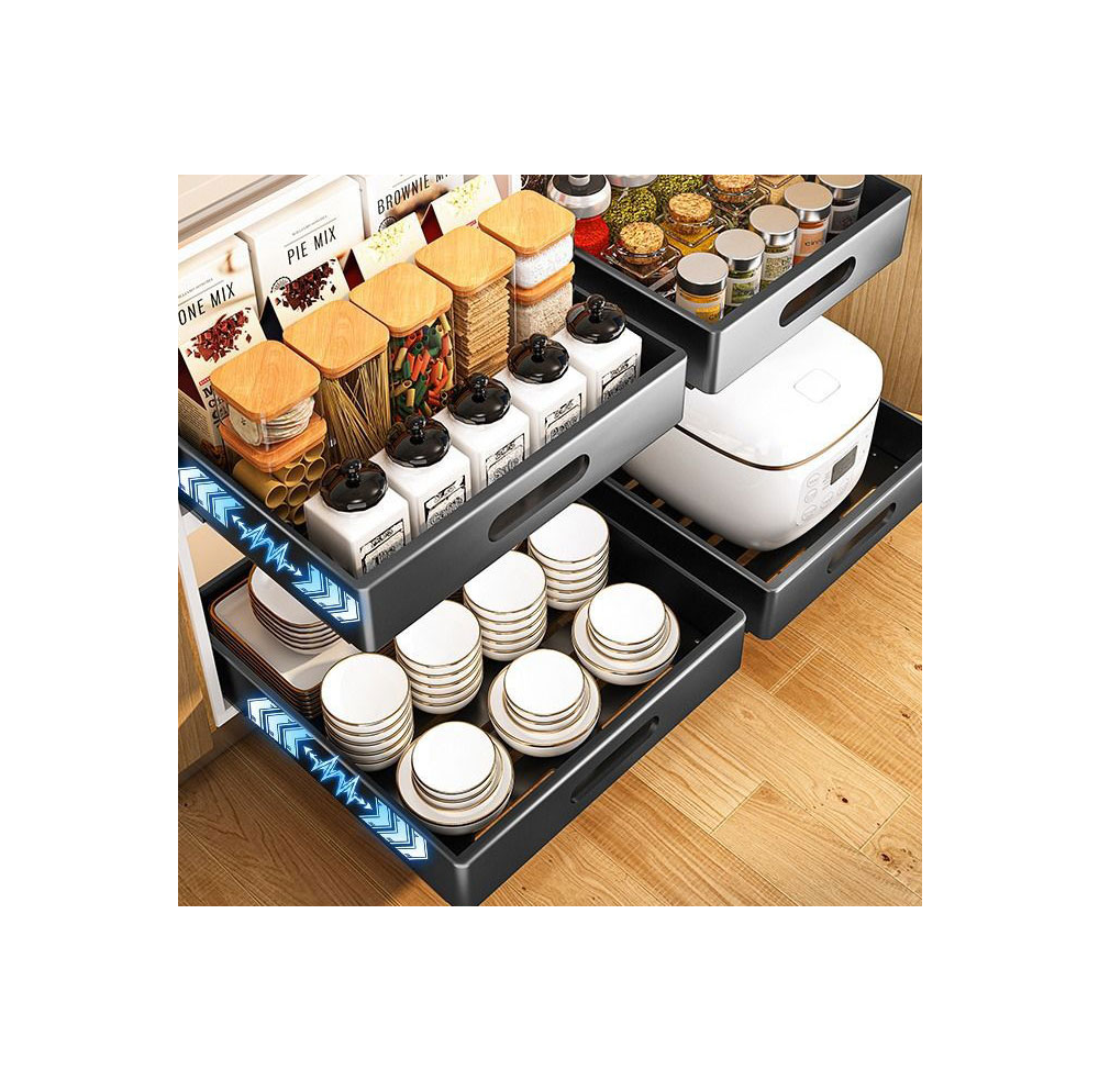 • 무타공 슬라이딩 레일 수납장 주방 양념통 조미료통 부착식 씽크대 정리대 선반